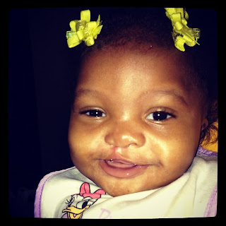 These 7 months have gone by so fast! Darrick and I are so happy to be blessed with Emma, she keeps us on our toes and constantly laughing! She has so much personality to be so little! Its amazing to see how she follows us around the room, she even follows the dog around the house with her eyes! She can’t wait to get to her! LOL!!