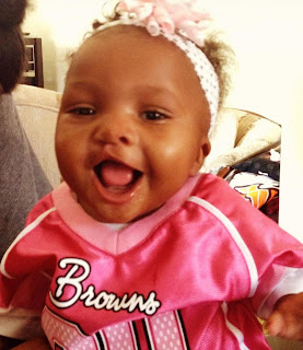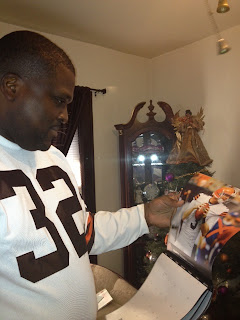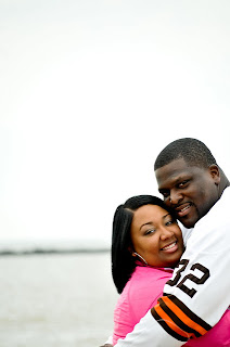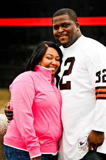 I eventually grew out of that and became a lady…LOL! Well I was still a lady that could talk sports with any group of men! It wasnt until I started dating my husband that I learned what a REAL SPORTSFREAK was! Now I was a Cleveland Browns fan, but I mean he is a FANATIC but it a good way! LOL! Darrick loves his Browns!!! He said growing up his father was a big Cleveland Browns fan, and like any son you just fall in line with team! His all time favorite Browns player is Jim Brown! Check out our engagement pictures below…we are in front of the Browns stadium and Darrick is wearing his Throwback Jim Browns jersey!