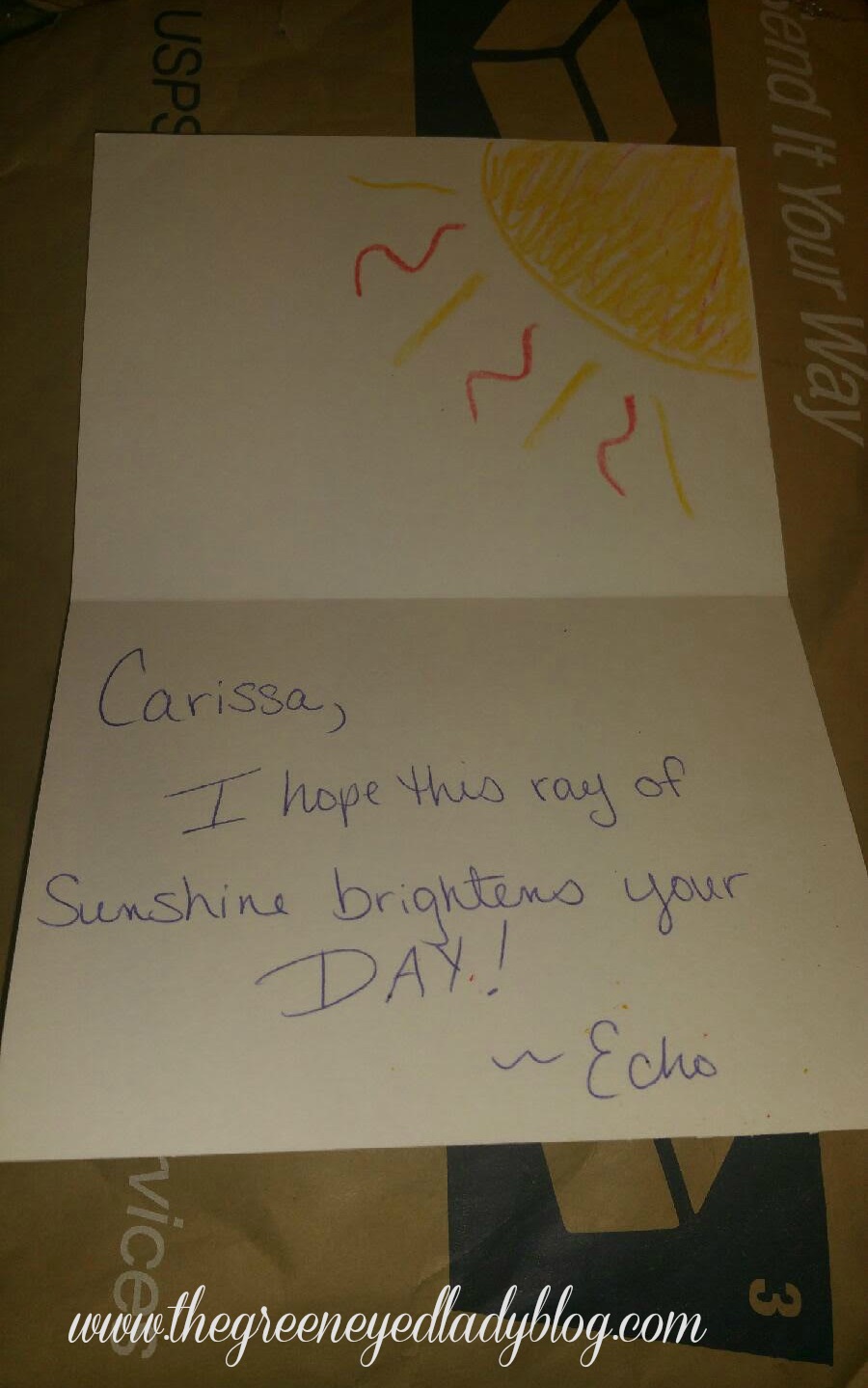 I wanted to THANK YOU so much for the sunshine you sent my way! I really needed this, my heart has been pretty heavy with everything going on in the world…so I really needed this!