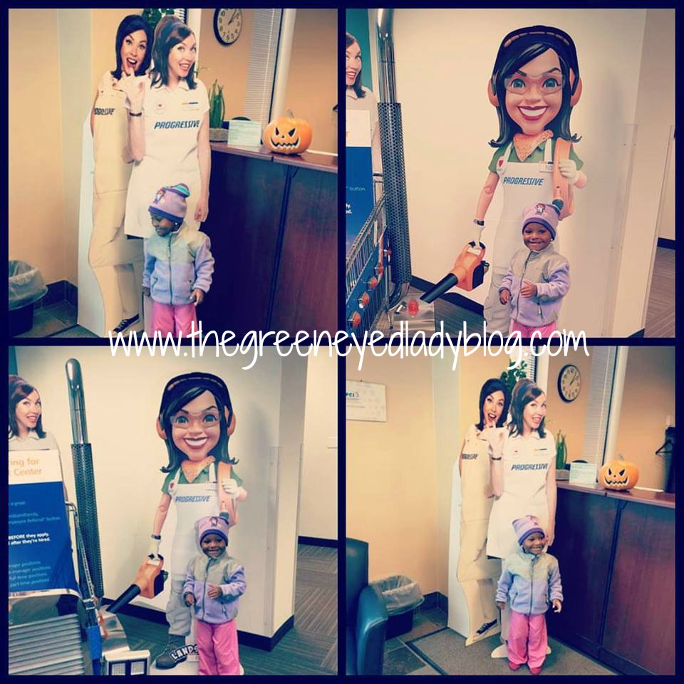 My sister works at the Progressive Headquarters and on Friday we went Trick or Treating at her job. We always have a great time there, and we get LOTS of candy. We filled up two recyclable bags! Needless to say we will be sharing some of that candy because the kids don’t need it and neither does Mommy and Daddy.