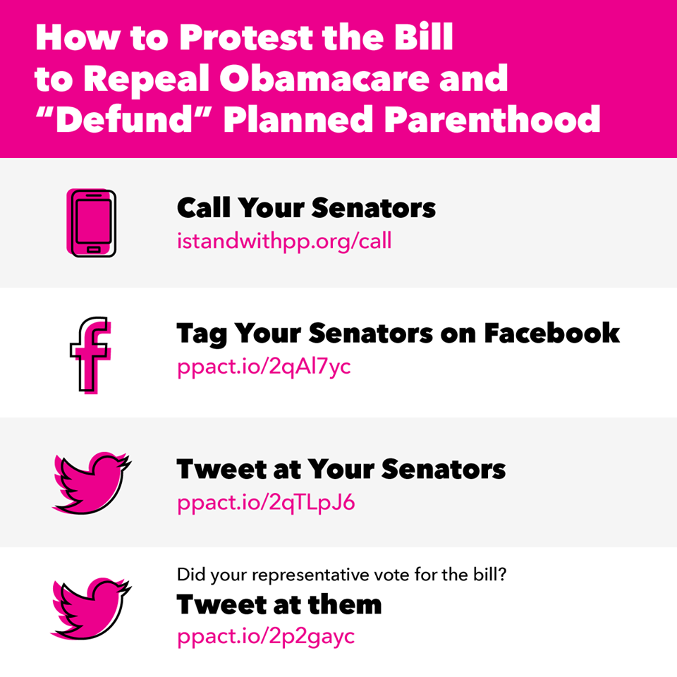 I know the common theme is that Planned Parenthood is only here to provide abortions, however, there are MANY services they provide besides abortions. And without Planned Parenthood there will be many women that wont be able to get health care if this Bill to Repeal Obamacare and Defund Planned Parenthood is passed due to currently receiving healthcare through Planned Parenthood, protection for those with pre-existing conditions will no longer be available, elimination of maternity coverage, newborn care and other Essential Health Benefits and it forces mothers with Medicaid coverage to find work shortly after giving birth, kicks millions of women and men off their insurance, ends Medicaid expansion, guts Medicaid program, imposes additional cost on women, reduces women’s access to no-copay birth control and creates a nationwide ban on abortion coverage.